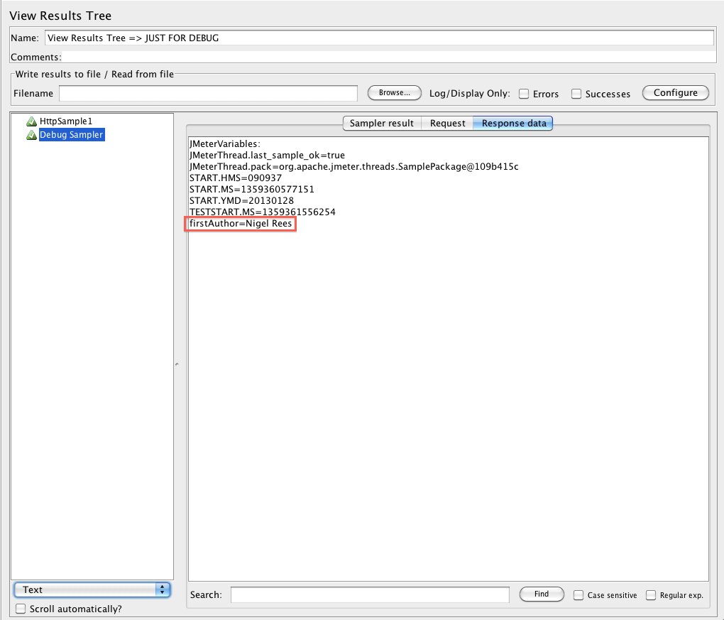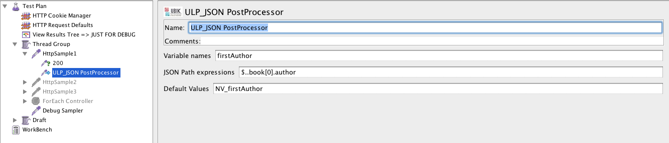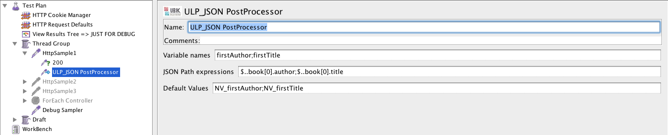 Once we have found the correct syntax we can add the ULP_JSON PostProcessor to our sampler and extract our required data: